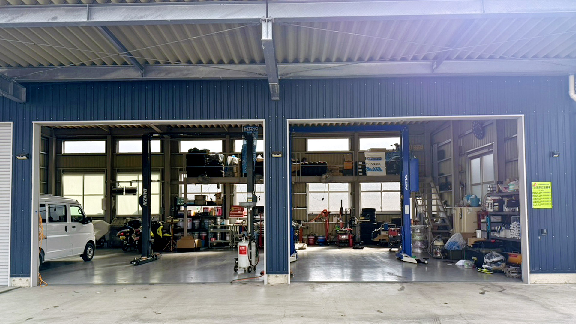 認証工場(認証番号 50-2147)を完備し、車検・点検・修理・カスタムまで対応!